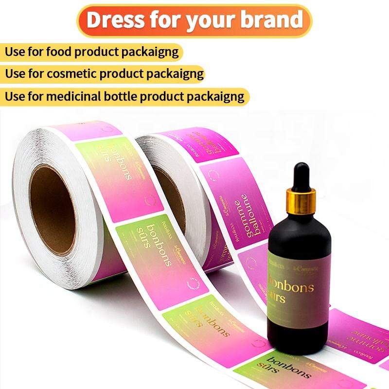 Product Item: Custom Printed cosmetic Logo Sticker waterproof Self Adhesive Vinyl Roll bottle packaging Label custom stickers
